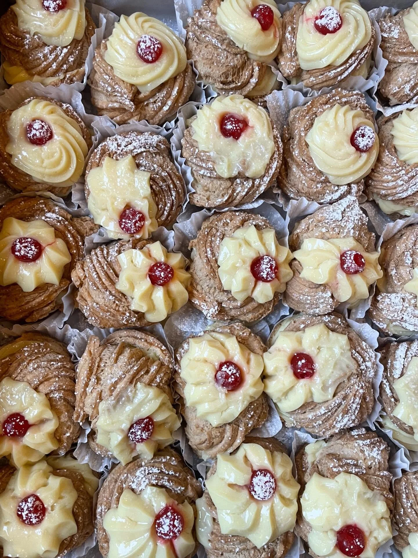 cannoli, rice pudding, italian rum cake, chocolate panettone bread pudding, strawberry mascarpone cake, tartufo